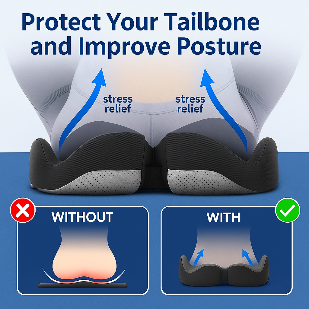 🪑 Ergonomic Support: Dual-density memory foam cushions your tailbone and realigns posture.